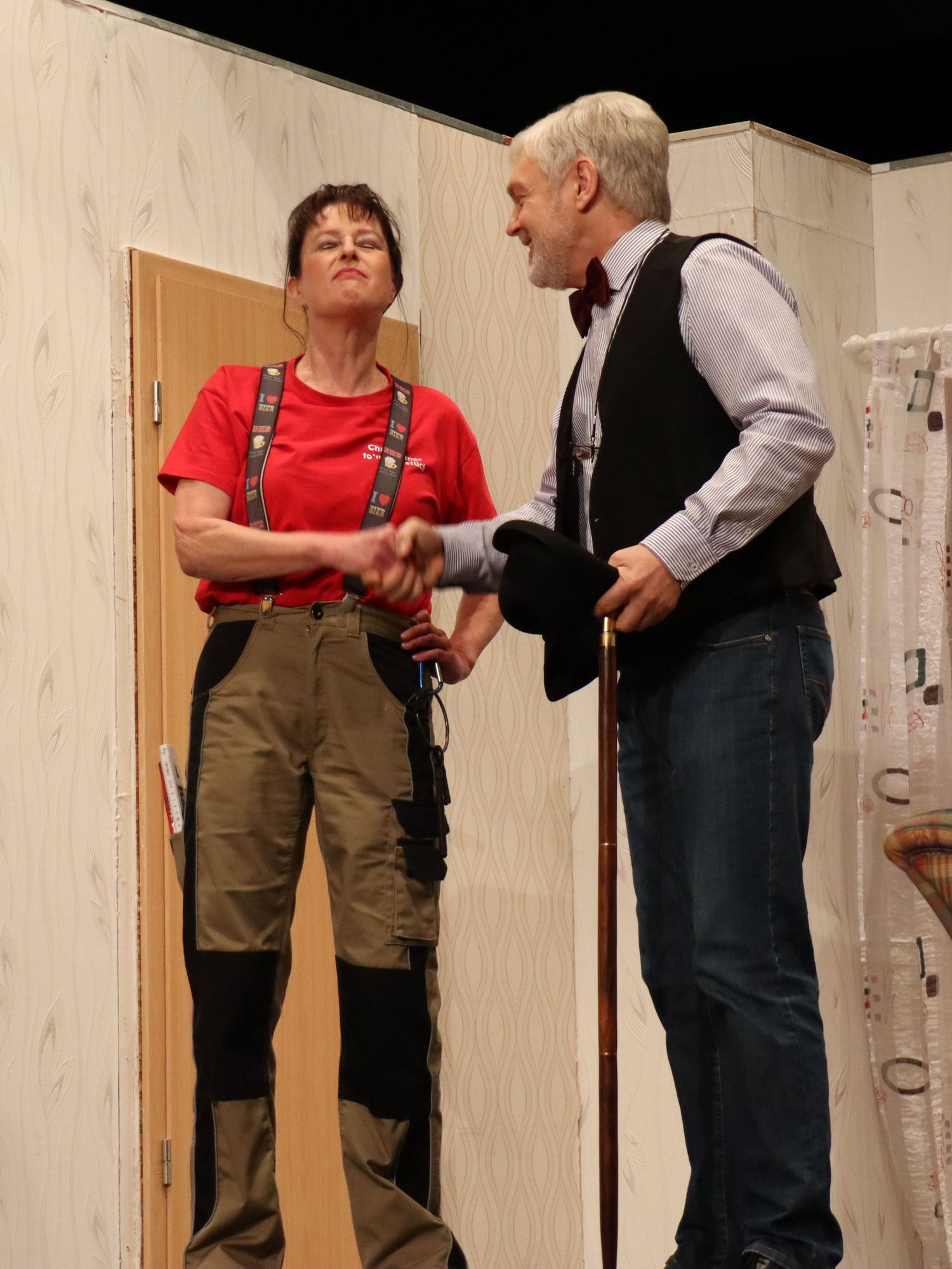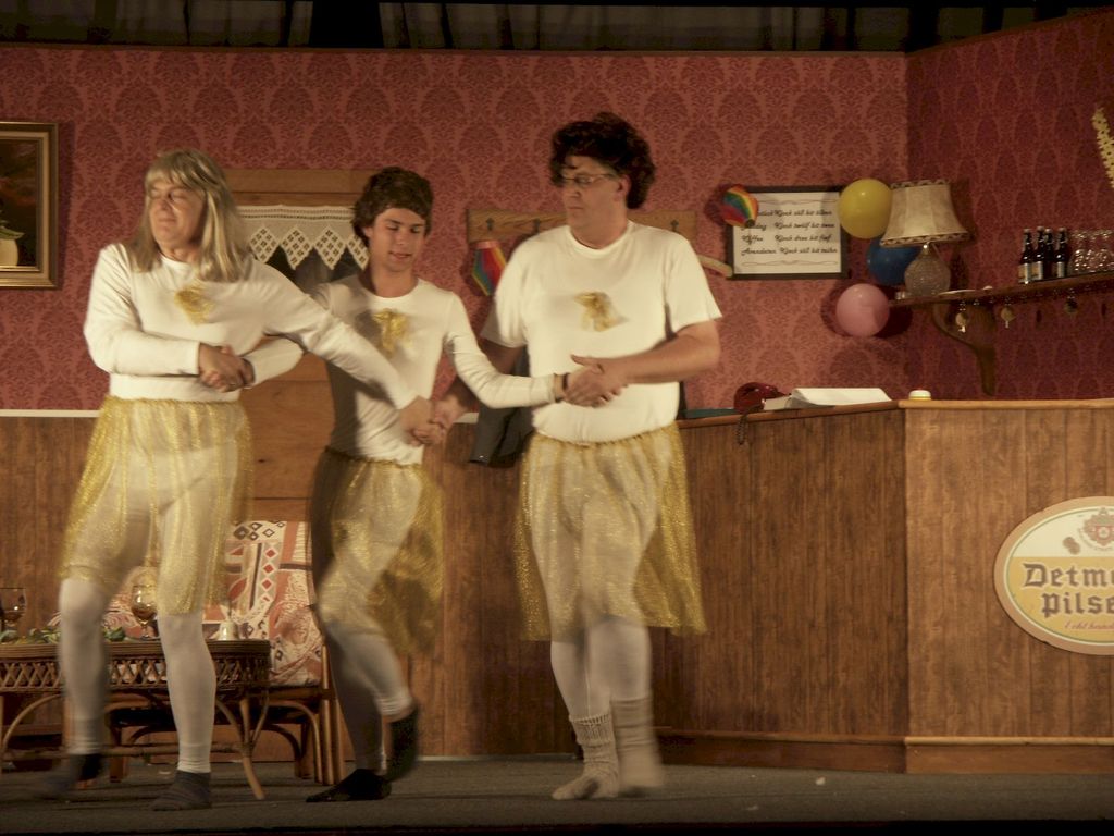Ihre Stammkundin Sandy, die sonst ihren Frühschoppen in der Kneipe einnimmt, muss in die Rolle einer feinen Dame schlüpfen. Ernas tollpatschiger Lebensgefährte Blöömke jagt als piekfeiner Kellner von einer Katastrophe in die nächste, der schweigsame Stammgast Heini und der arbeitslose Uwe weigern sich standhaft, die Kneipe zu verlassen. Der Bürgermeister Dieter Dröög ist gerade im Wahlkampf, während seine Frau Annabell nur so vor Ideen übersprudelt.
