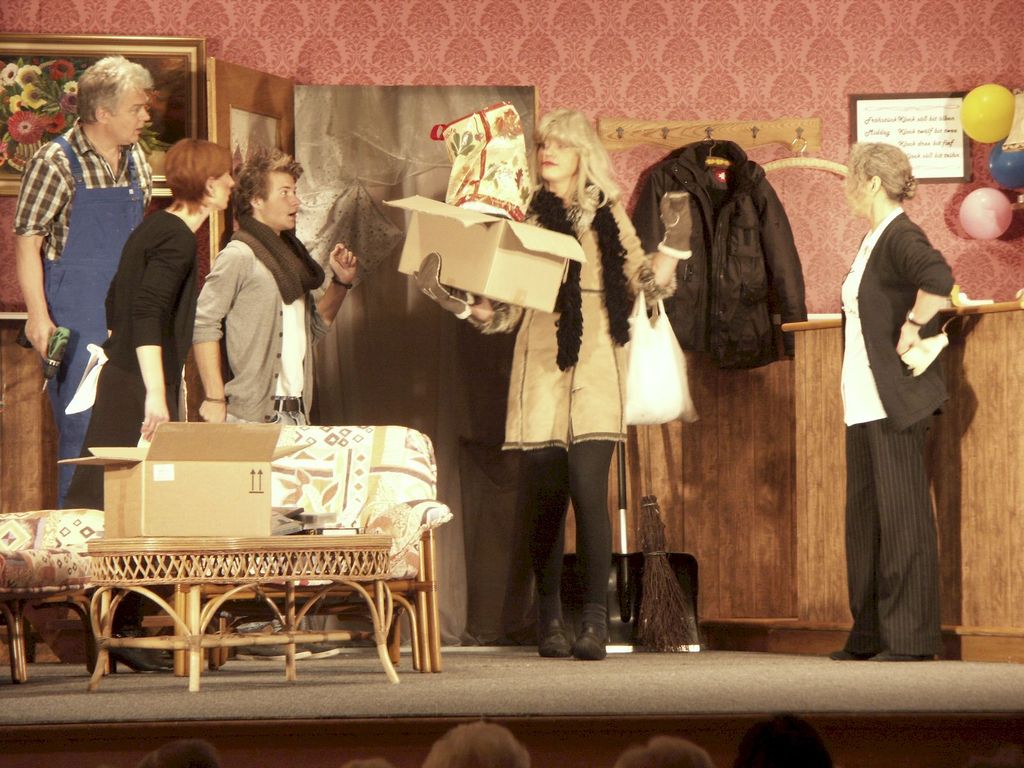 Ihre Stammkundin Sandy, die sonst ihren Frühschoppen in der Kneipe einnimmt, muss in die Rolle einer feinen Dame schlüpfen. Ernas tollpatschiger Lebensgefährte Blöömke jagt als piekfeiner Kellner von einer Katastrophe in die nächste, der schweigsame Stammgast Heini und der arbeitslose Uwe weigern sich standhaft, die Kneipe zu verlassen. Der Bürgermeister Dieter Dröög ist gerade im Wahlkampf, während seine Frau Annabell nur so vor Ideen übersprudelt.