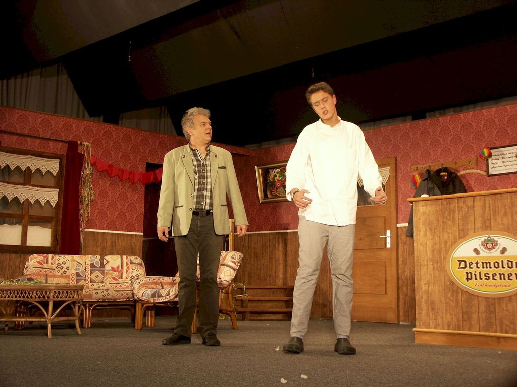 Ihre Stammkundin Sandy, die sonst ihren Frühschoppen in der Kneipe einnimmt, muss in die Rolle einer feinen Dame schlüpfen. Ernas tollpatschiger Lebensgefährte Blöömke jagt als piekfeiner Kellner von einer Katastrophe in die nächste, der schweigsame Stammgast Heini und der arbeitslose Uwe weigern sich standhaft, die Kneipe zu verlassen. Der Bürgermeister Dieter Dröög ist gerade im Wahlkampf, während seine Frau Annabell nur so vor Ideen übersprudelt.
