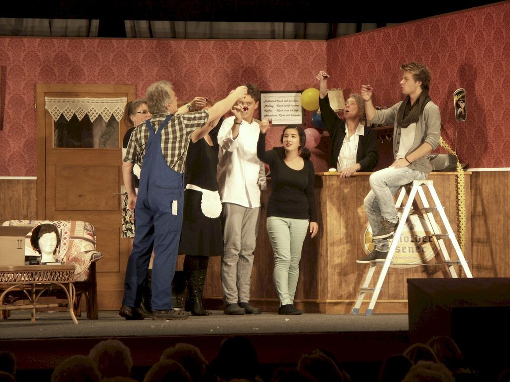 Ihre Stammkundin Sandy, die sonst ihren Frühschoppen in der Kneipe einnimmt, muss in die Rolle einer feinen Dame schlüpfen. Ernas tollpatschiger Lebensgefährte Blöömke jagt als piekfeiner Kellner von einer Katastrophe in die nächste, der schweigsame Stammgast Heini und der arbeitslose Uwe weigern sich standhaft, die Kneipe zu verlassen. Der Bürgermeister Dieter Dröög ist gerade im Wahlkampf, während seine Frau Annabell nur so vor Ideen übersprudelt.